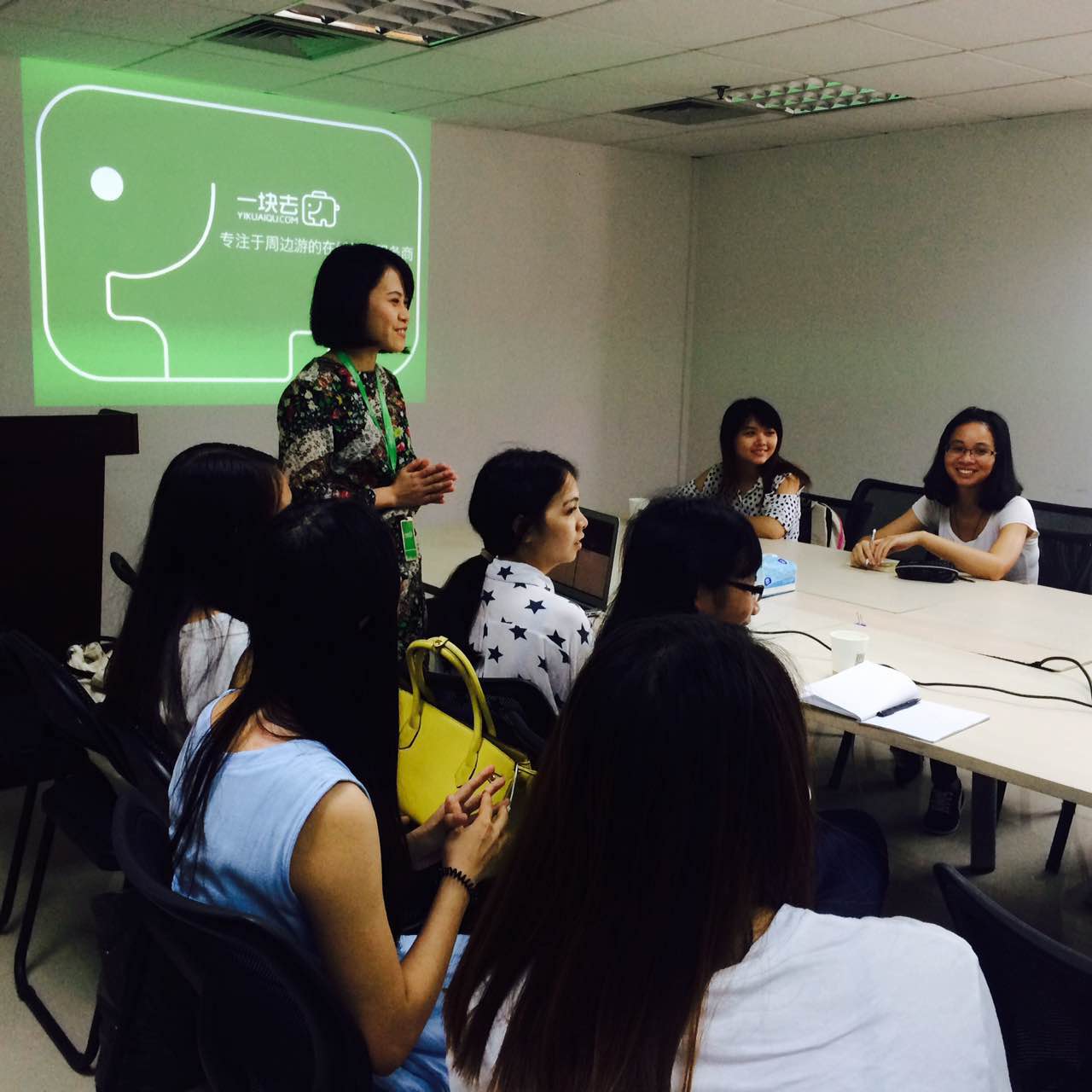 本网讯 4月28日下午,国际工商管理学院2013级旅游管理专业的学生在专业老师谢婕的带领下走出教室,到位于广州市天河区的“一块去旅行网”公司开展实践教学活动。