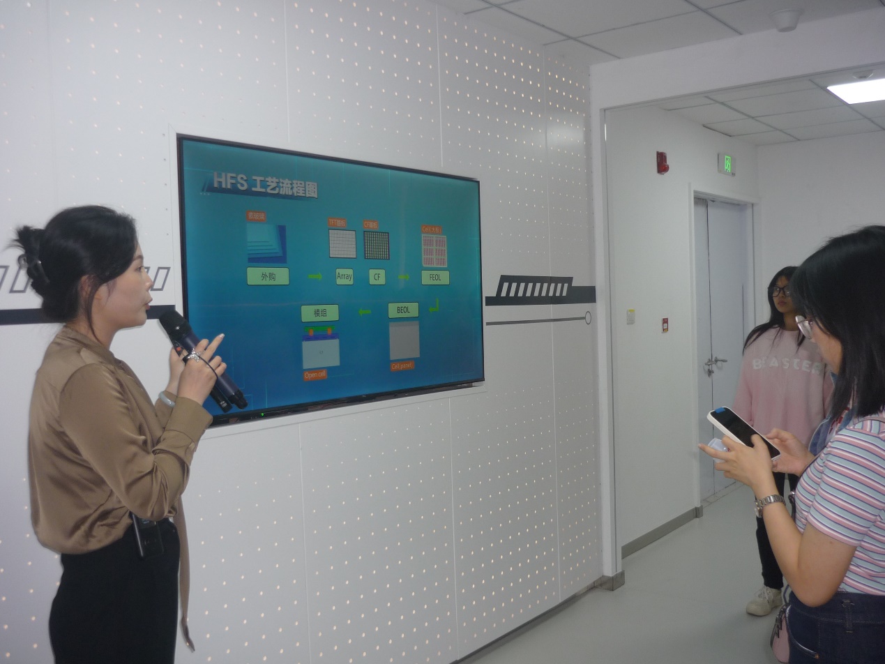 参观的第二站来到Array栋观光走廊。观光走廊展示了华星核心产品的技术、工艺、流程等示意图,讲解员用通俗易懂的语言让学生了解到屏幕的生产。车间区域全方位透明,透过玻璃下,可以清楚看到屏幕进行清洗、镀膜、翻转和曝光的每一个环节,近距离审视先进的生产设备和TCL华星标准的生产流程。