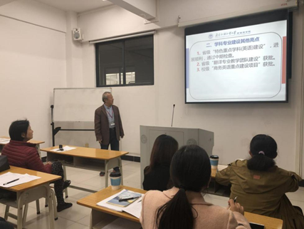 学科负责人余东教授对学院的整体科研状况进行了总结,指出本学年英文学院科研成果取得喜人成绩,同时鼓励老师们在寒假期间积极开展科研工作。