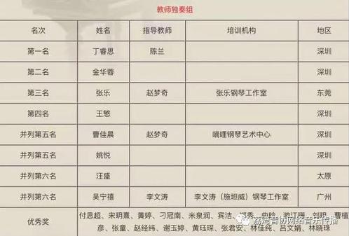 第十届深圳钢琴公开赛(教师独奏组)获奖情况