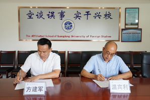 本网讯 11月1日,英文学院院长温宾利、副院长李春梅及党总支书记赖敏赴广州市白云区白云外国语中小学参加在该校举行的教学实习实践基地签约仪式。签约会议由白云外国语中小学办公室副主任陈丽丽主持,党支部书记、校长方建军和党支部副书记朱传兵、副校长黄哲昙参加了签约会议。