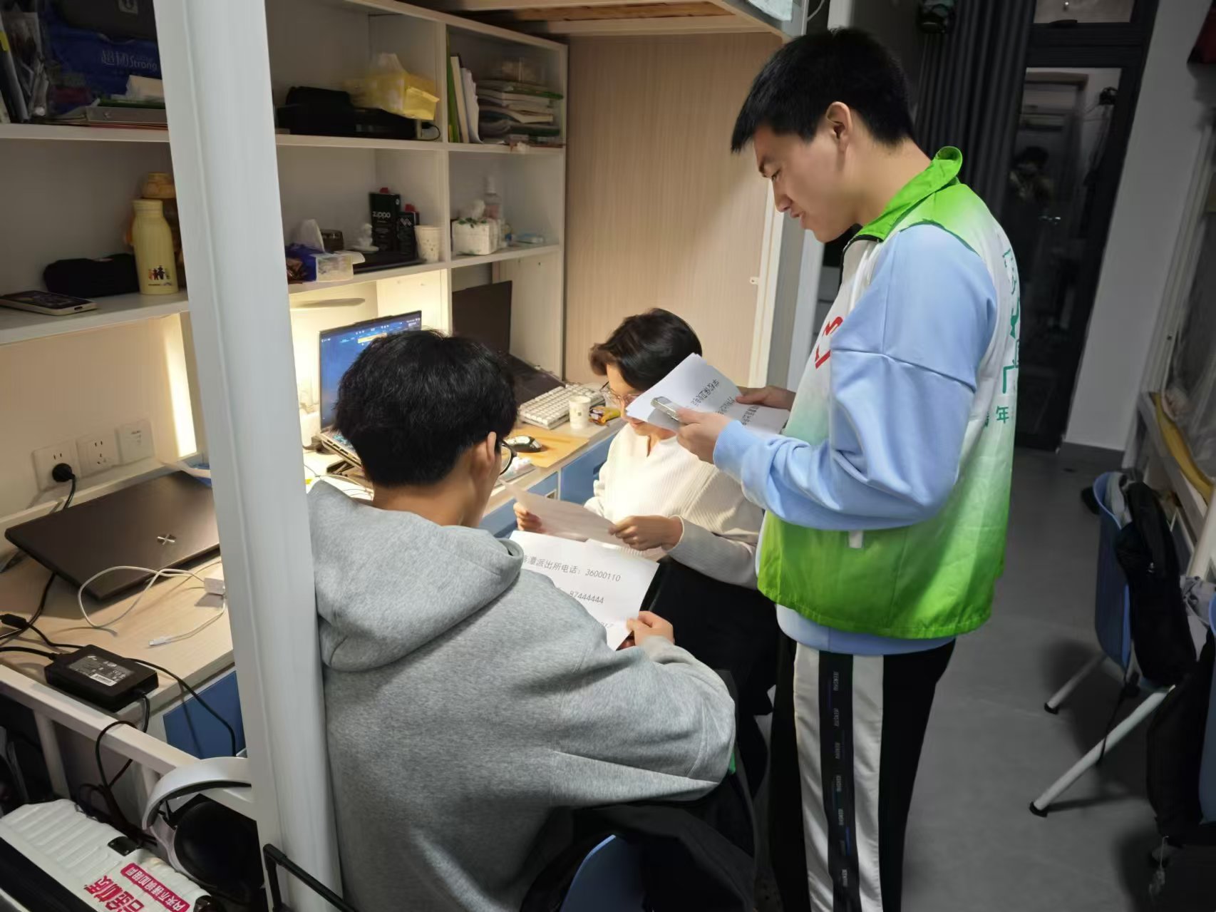 (志愿者在宿舍进行反诈宣传 麦文曦/摄)