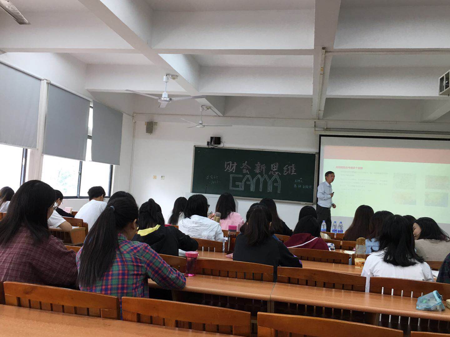 2018年10月17日星期三上午,广东省管理会计师协会会长助理、中山大学管理学院蔡祥副教授来到教学楼G404,为16GAMA班开展了以“财会新思维”为主题的讲座。